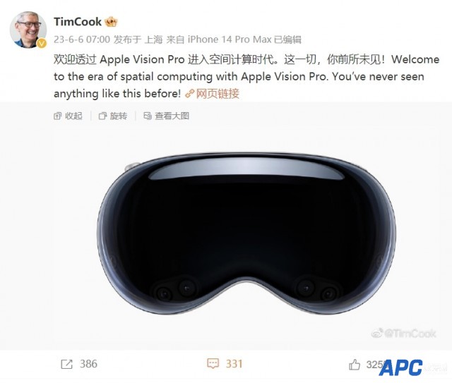 6 月 6 日消息,今天凌晨苹果 WWDC23 全球开发者大会举行,推出了包括 iOS 17、macOS Sonoma、MacBook Air 15、Apple Vision Pro 头显等软硬件设备在内的新品。 苹果公司 CEO 蒂姆・库克通过微博发文称,“欢迎透过 Apple Vision Pro 进入空间计算时代。这一切,你前所未见!Welcome to the era of spatial computing with Apple Vision Pro. You’ve never seen anything like this before!” ![]() 据苹果官方介绍,“Apple Vision Pro 是一台革命性的空间计算设备,将数字内容无缝融入真实世界,让用户处在当下并与他人保持连接;打造无边际画布,让 App 突破传统显示屏的限制,为用户带来全新的 3D 交互体验,以最自然、最直观的输入方式来控制 —— 眼睛、双手与语音;搭载空间操作系统 visionOS,通过用户与数字内容互动的模式,让数字内容如同存在于真实世界;搭载超高分辨率显示系统,将 2300 万像素置于两个显示屏中,定制的 Apple 芯片为独特的双芯片设计,确保用户每次的体验如同在眼前即时发生。” Apple Vision Pro 售价 3499 美元(备注:当前约 24843 元人民币),将于明年初上市,首先在美国市场推出,晚些时候将在更多国家推出。 |